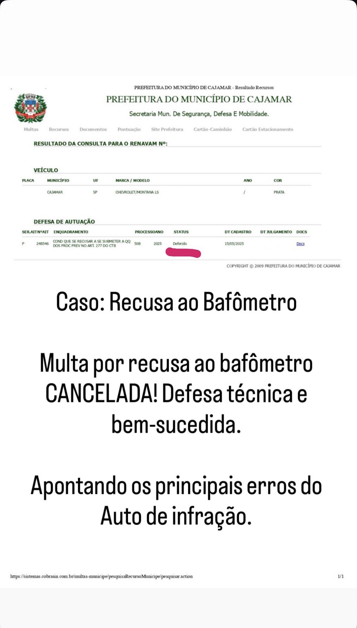 Recurso técnico contra multa por recusa ou resultado positivo. Verificamos todas as irregularidades possíveis, do equipamento ao procedimento, para proteger sua CNH.
